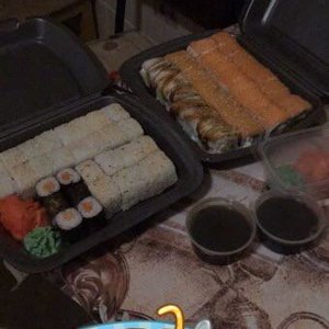 Доставка была 2 часа, но это ладно, так как предупреждали что будет полтора часа. Всегда заказывали суши только здесь, все нравилось. Сегодня решили заказать с доставкой на дом, так как близкий к нам сушишоп закрылся. Результат: отвратительные сеты и зря потраченные деньги! Есть конечно можно, но это уже не те роль что раньше. Заказывали 4 и 7 сеты и очень разочарованы! Не вкусно. В итоге засунули почти полный сет в холодильник, хотя раньше съедали в момент. Больше не будем тут заказывать, хоть и дёшево.